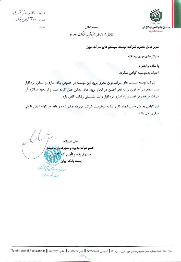 پشتیبانی آنلاین سرآمدنوین از طریق تماس تلفنی، ارتباط مستقیم با تیم فنی و پاسخگویی سریع به درخواستها انجام میشود. در صورت نیاز، پشتیبانی حضوری نیز قابل ارائه است.